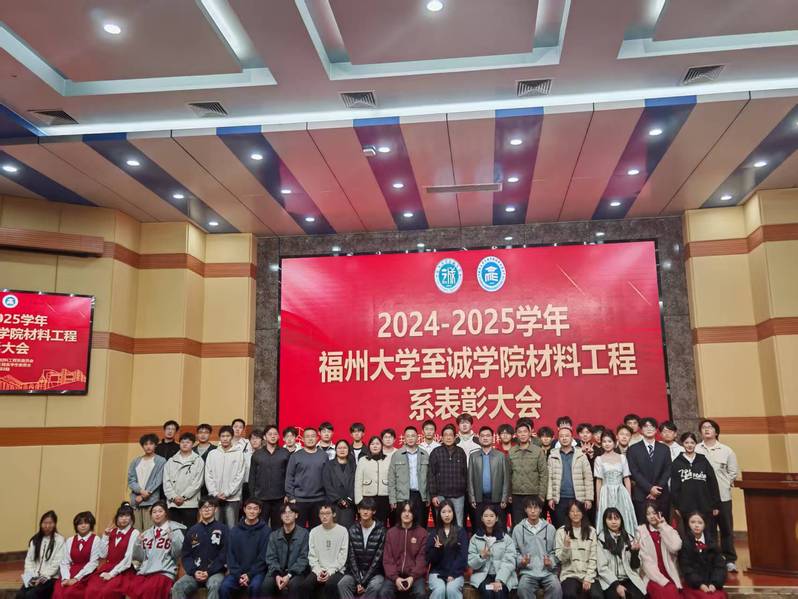 近日,福州大学至诚学院材料工程系2025年度表彰大会在科报厅隆重举行。系领导、全体师生齐聚一堂,共同见证属于材料人的荣耀时刻。本次大会旨在表彰先进、树立榜样,激励全体学子以优秀为标杆,在材料科学的探索之路上笃行不怠、勇攀高峰。