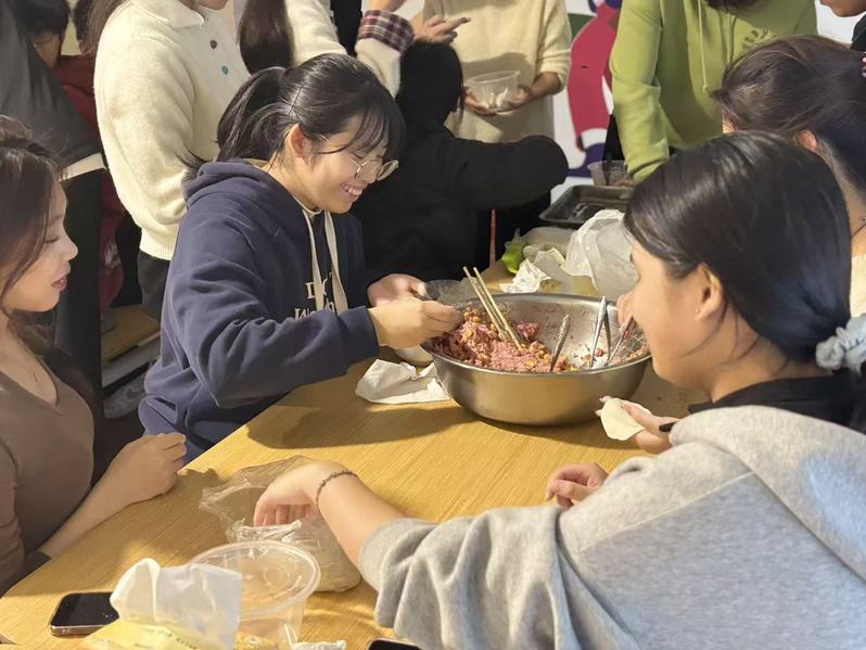 活动现场,同学们以小组为单位分工协作,擀皮、填馅、捏合等环节有条不紊,一双双巧手制作出形态各异的饺子。欢声笑语中,师生不仅体验了传统美食的制作乐趣,更增进了彼此的情谊,深刻感受了合作与分享的快乐。
