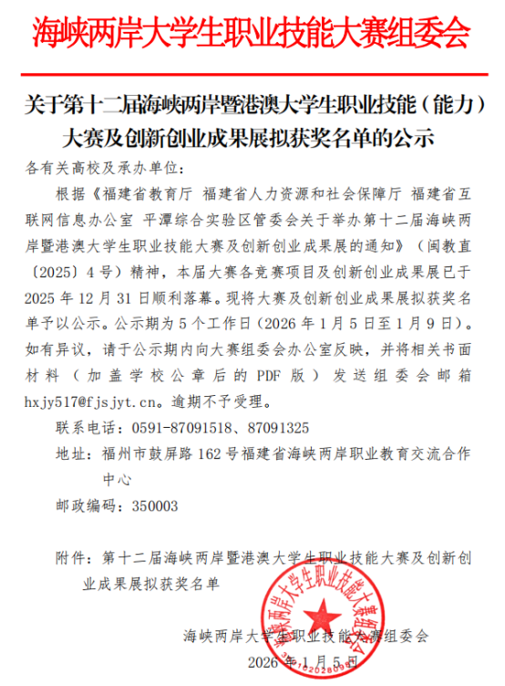 喜报丨我系师生荣获第十二届海峡两岸职业技能(能力)大赛及创新创业成果展2项殊... | [2026-01-13] |
